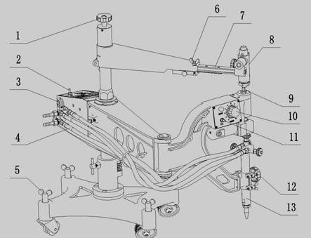 4.輸送氣體的軟管:安裝在分配器與割炬之間,共四根。分為預熱氧、切割氧、燃氣和壓力開關供氣。