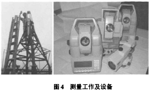 配備適用完好的儀器,精心布設測量基準點和基準網,選擇正確的測校方法和數值傳遞路線,是工程測量的基本要素。超高層由于結構高,通視條件差等因素的影響,結構測量的難度很大。目前比較先進的方法是建立雙重控制網,選用GPS定位系統進行測量基線網的測設,并以高精度全站儀為重要手段,進行構件空中三維坐標定位,見圖4。