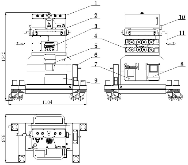 設備外形L×W×H尺寸為1104×676×1240mm。