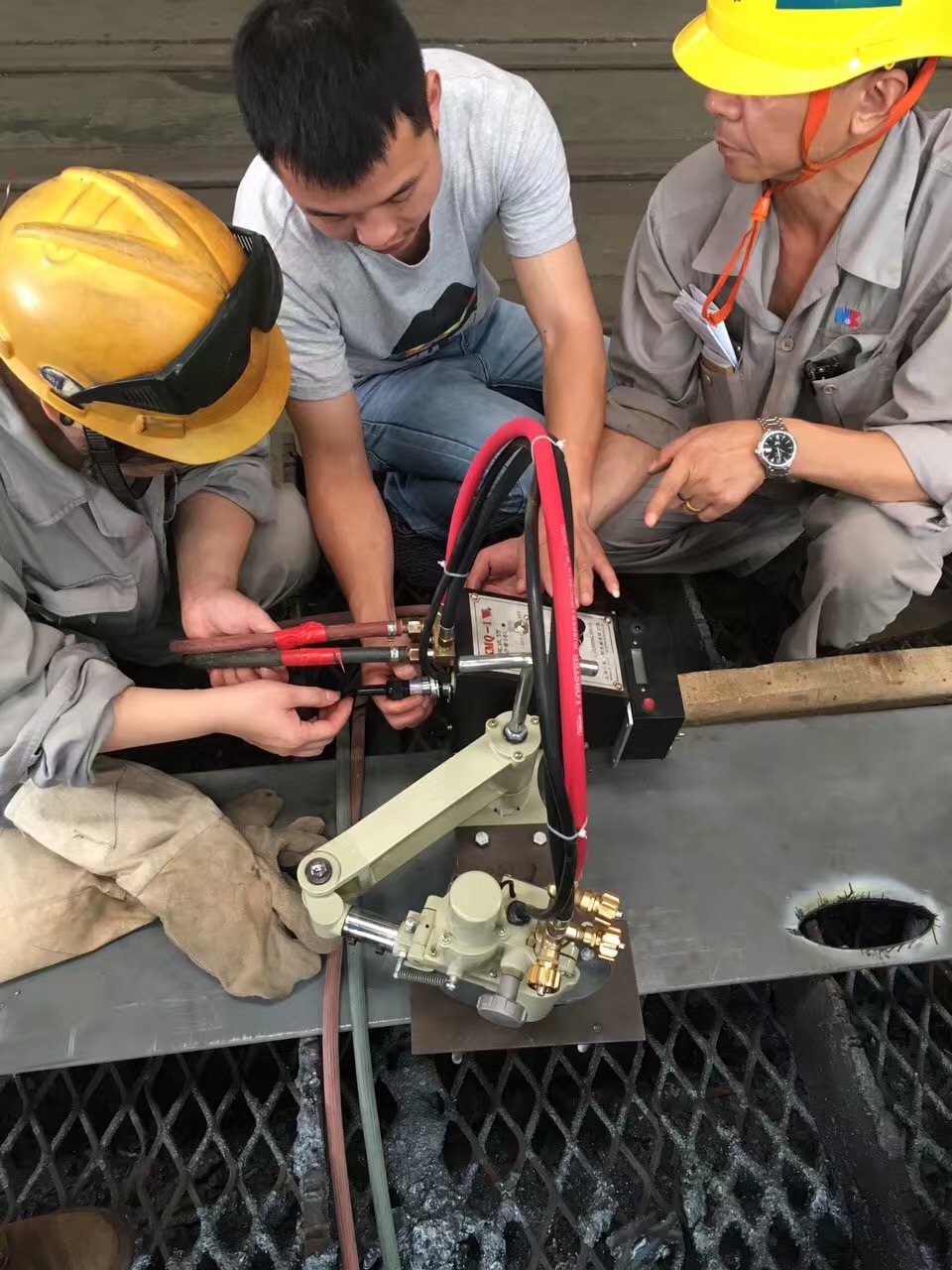 華威焊割電池驅動仿形切割機在上海某造船廠投入使用
