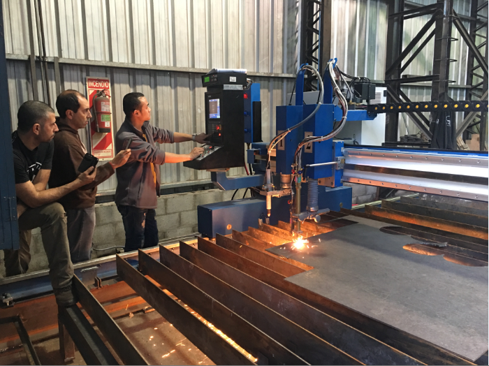 華威焊割工程師在阿根廷培訓(xùn)客戶使用數(shù)控切割機(jī)、焊接小車、坡口機(jī)。