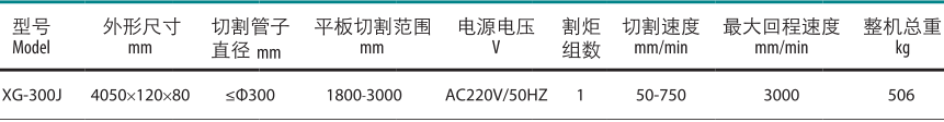 XG-300J系列數(shù)控管板切割機(jī)為3軸的數(shù)控切管機(jī)。當(dāng)設(shè)備離開A軸工作臺(tái)時(shí)就是一臺(tái)平板數(shù)控切割機(jī)。